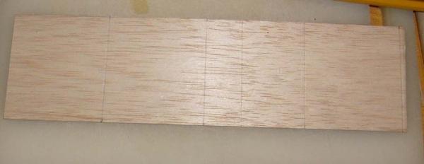 Now find your 3" by 11 1/8" piece of balsa and cut it into four 3" by 2 3/4" pieces. There will be a small scrap piece left over.
