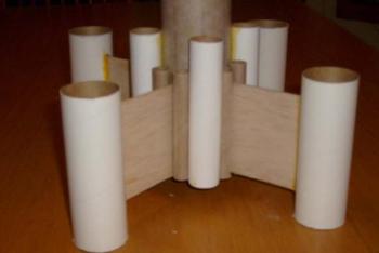 sections of BT-50 tube to 2 3/4" in length. Use wood glue to glue an engine block into the end of each tube, flush
