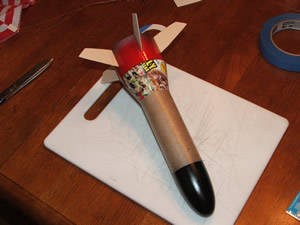 Con's: Some of the "spare parts" I used had been previously used as paint tubes which made fin attachment a challenge. The pizza and wing ad that I used for the transition was too thin and slick and wouldn't accept the thin CA that I normally use to beef cardstock up.