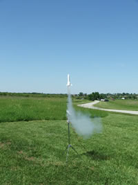 With a field the size of the VOA, I felt comfortable trying with a C6-5 for the first flight. I checked the fins for any wiggles I might have missed and announced it as a heads-up flight. The Vector G leapt off the pad quickly and arced to the north in the light breeze. Much better than I had hoped for. Ejection was perfect and recovery, while a decent walk into the tall grass, was likewise.