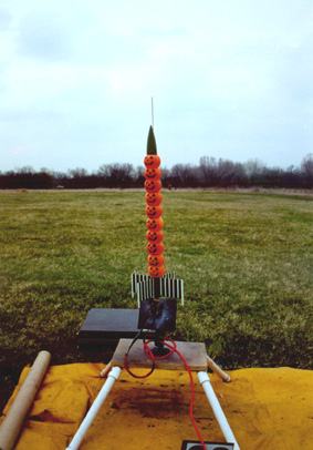 The main oddity on this rocket is the pumpkins stacked on the body tube. These are a standard haloween decoration