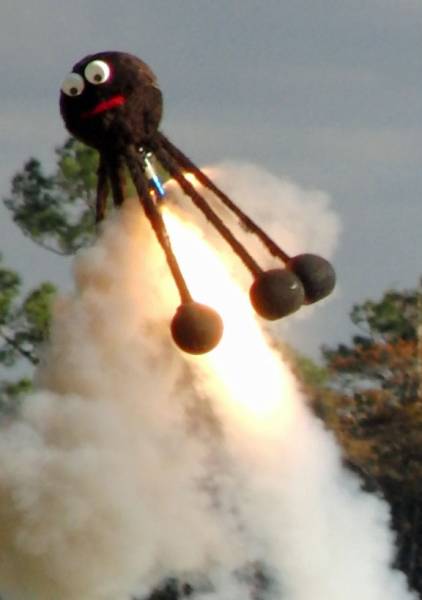 The motor came apart shortly after ignition. The case ripped apart just above the threads at the rear. The rocket only reached about 75 feet in altitude before falling to the ground. No damage, fortunately, to the rocket.