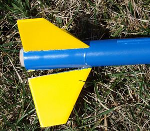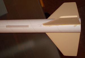 also added. The launch lug was attached on a line just next to one of the fins, 5" forward of the aft end of the