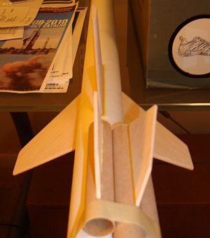 Construction of the actual rocket was fairly straightforward. The sustainer is essentially a simple 3FNC and the booster, while offering some alignment challenges was not too difficult. All parts were joined with Titebond wood glue except where noted. Overall I would rate this somewhere just beyond a skill level 2 effort.