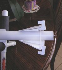 The meat of this design is the method of mounting the Shuttles. The upper part of the mount is a short piece of a FirstFire tube that mates with the peg on the glider. The Shuttle mounts are mainly attached with wood glue although I used some 5-minute epoxy on the front end.
