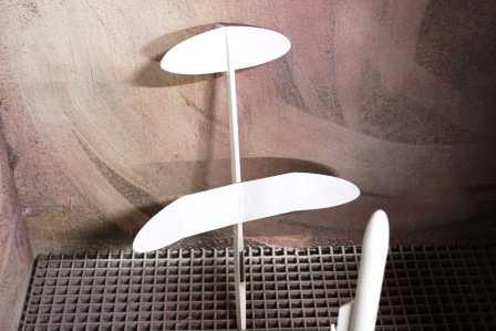 A day later, the pod was sanded again. I was mindful of the warnings I had heard about building up too much sealer/primer/paint and went after it with 320 and then 400 sandpaper. When I was done, I had misgivings because it mostly still looked white. I could see grain and pencil marks, though. Knowing how fast Kilz covers things up, I figured that most of what I was seeing was the chalkiness of the balsa fillercoat. The pod was then taken back to the booth and given a single coat of gloss white.