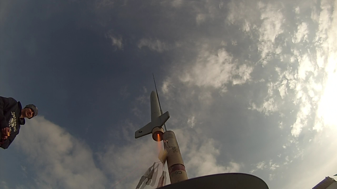 Nice stright flight. Lost sight after boost. Caught a glimpse of the streamer at ejection charge but lost it. Poor Boy is MIA