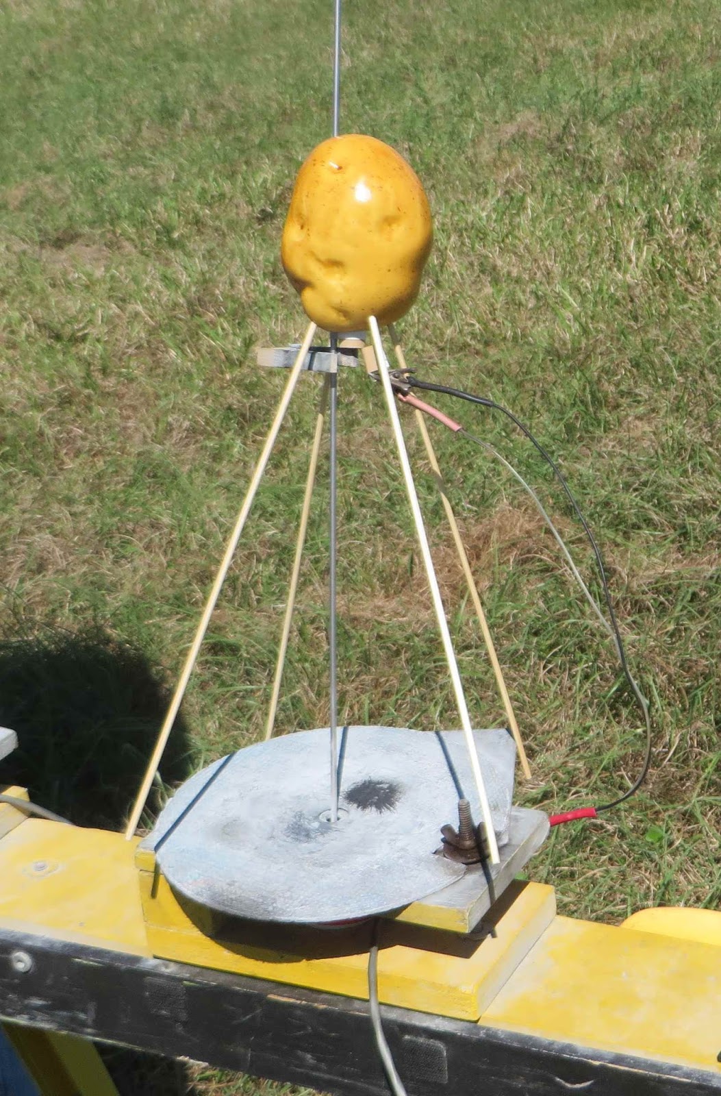 Based on the old Sputnik Two design, this one used a styrofoam potato on top of four dowel legs.