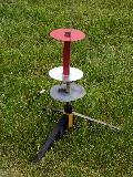 A spool rocket made from a 6" BT-50 tube with 2 CD's attached.