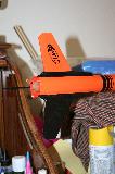 Estes Vagabond. Replaced stock shock cord with Kevlar. No other mods. Painted with Krylon Pumpkin Orange and Walmart Gloss Black over a base coat of Walmart Gloss White.