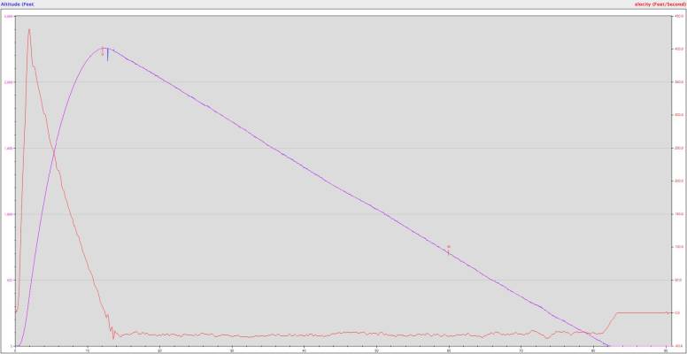 Flew with StratoLogger CF (primary) and StratoLogger SL100 (backup). Both altimeters used only for logging, rocket was rigged for single-deploy motor ejection (main in lower parachute bay, drogue in upper parachute bay with no charge).