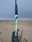 Weather cocked a lot due to breezy conditions and had a high speed recovery. The shock cord broke and the booster crashed and broke apart. Pretty much a total loss of the booster. The nosecone and stripped parachute were recovered. One good thing is that the tail cone can be used to build another ... [More]