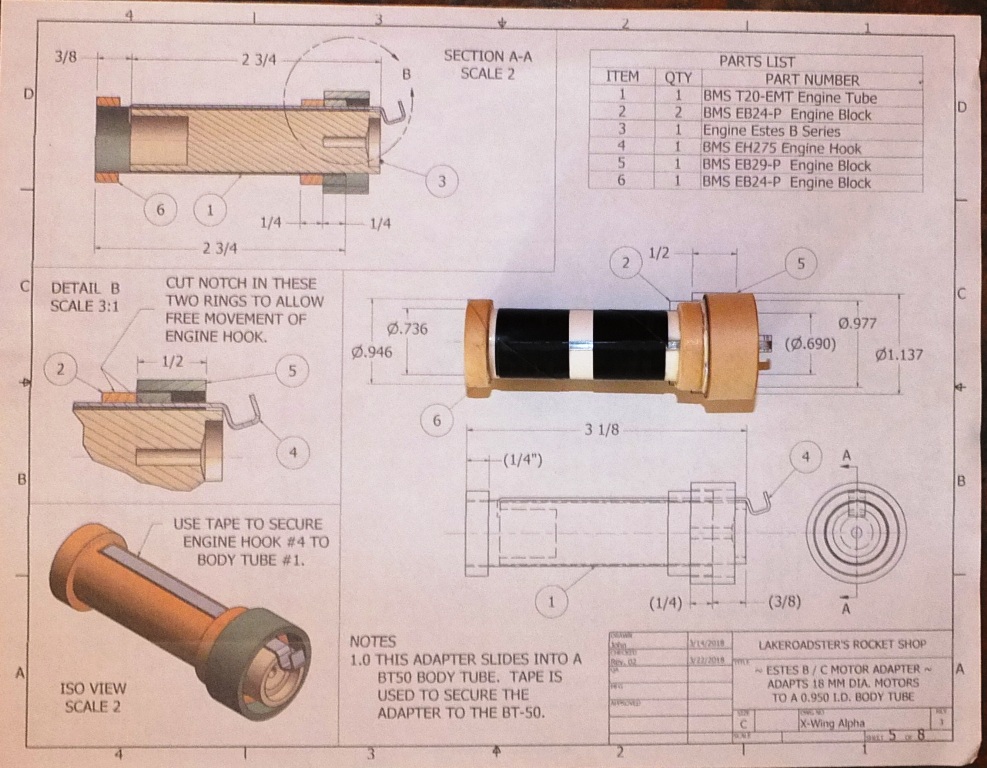 This rocket is scaled to utilize an Estes Alpha nose cone and BT-50 body tube.